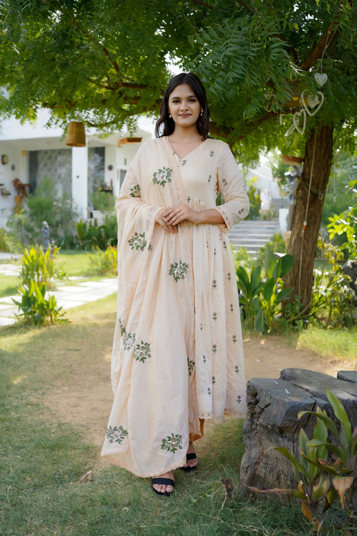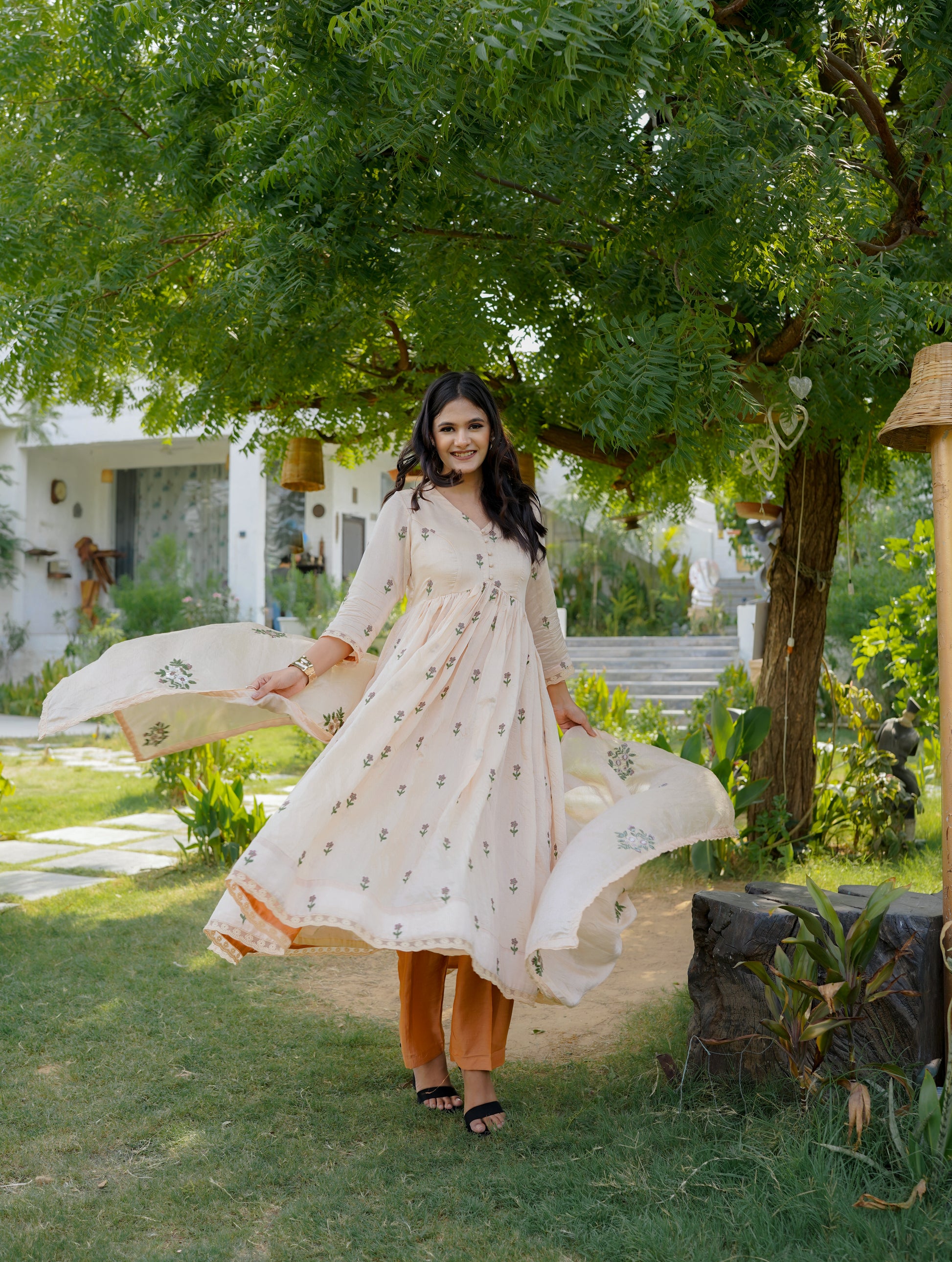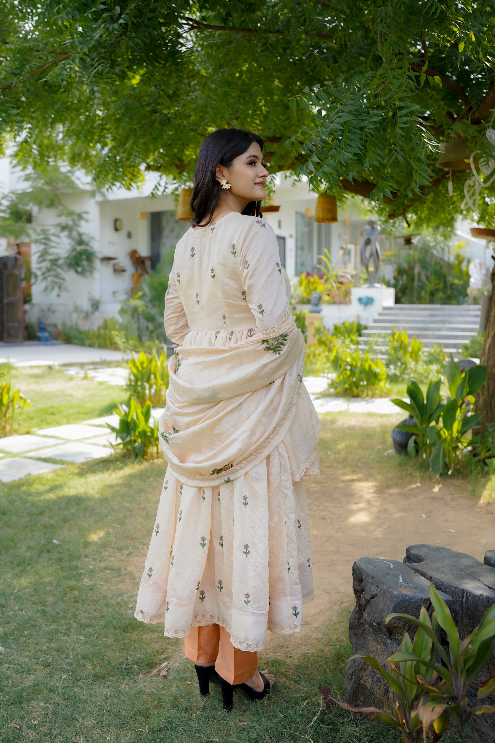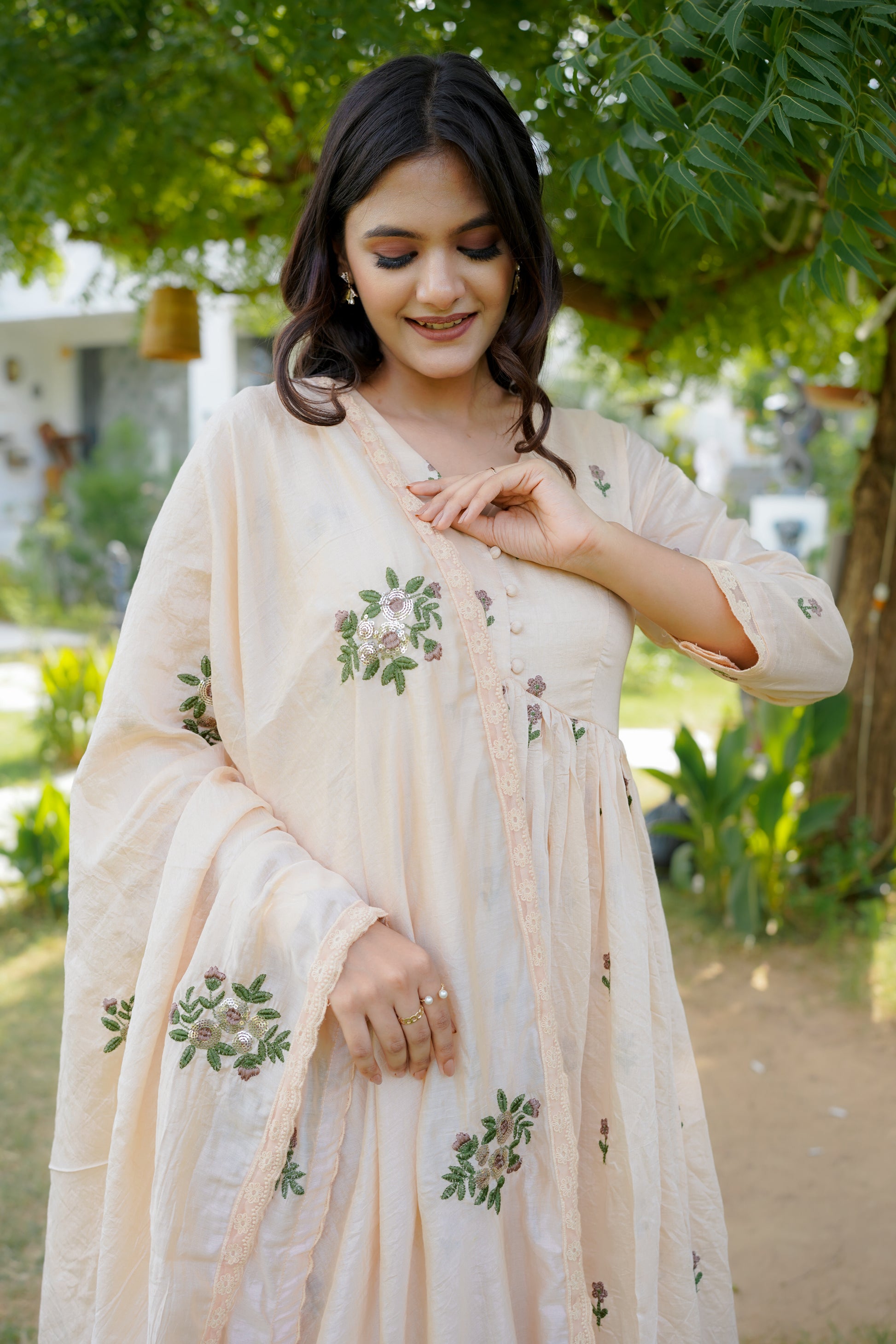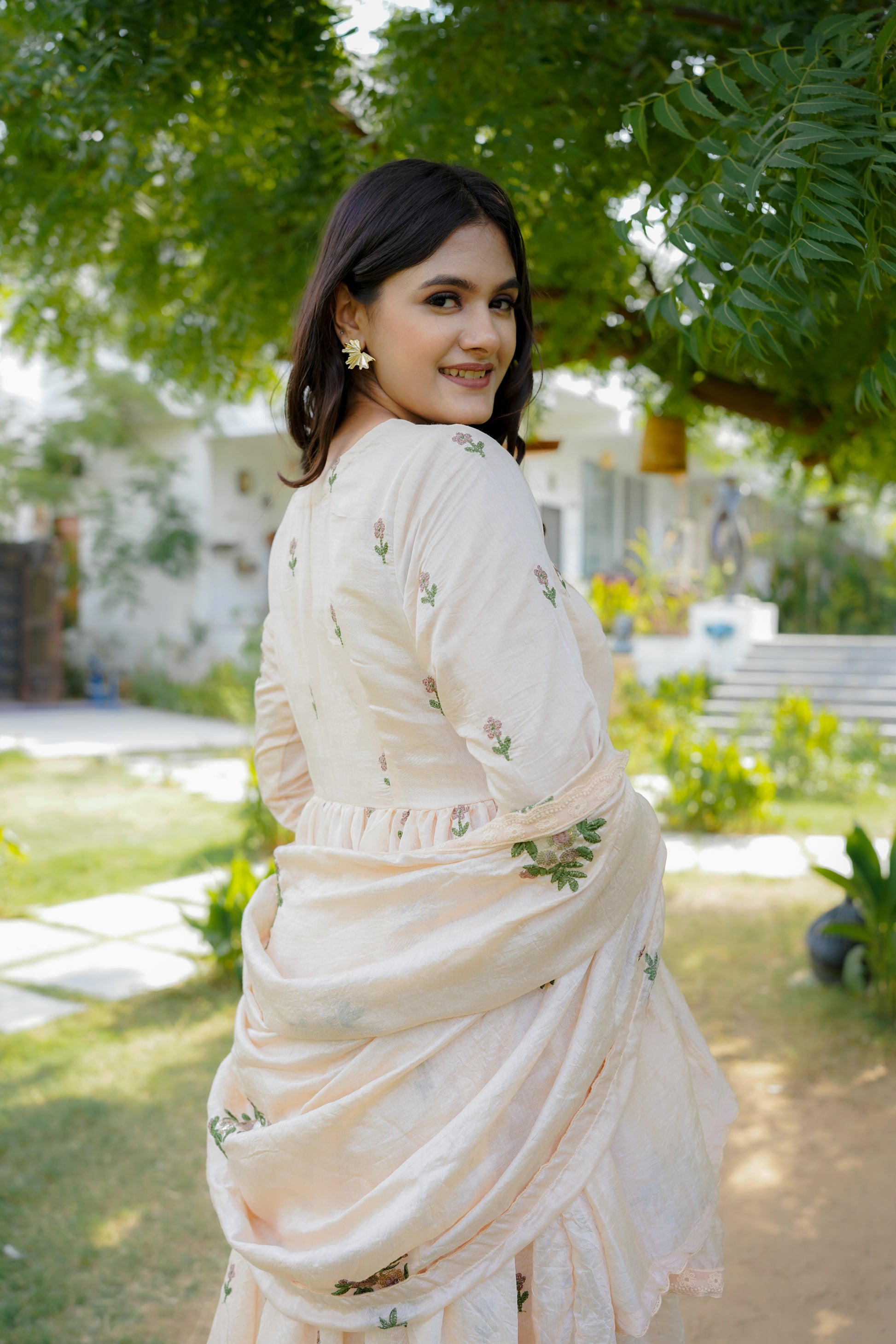 Designed with a focus on comfort and sophistication, the Rose Anarkali Set is crafted from breathable fabric, ensuring you look and feel your best throughout the day. Pair it with traditional jewelry or subtle accessories to create a look that suits the occasion.