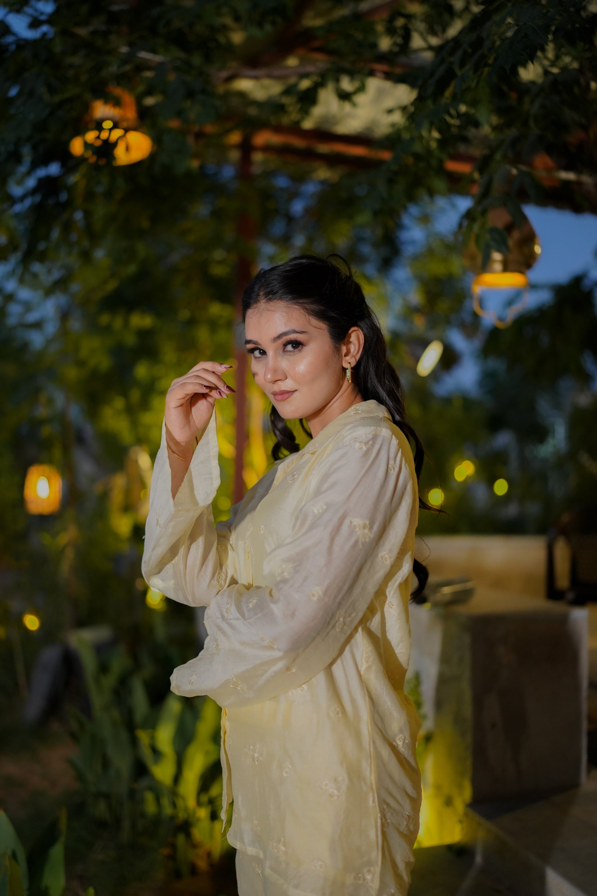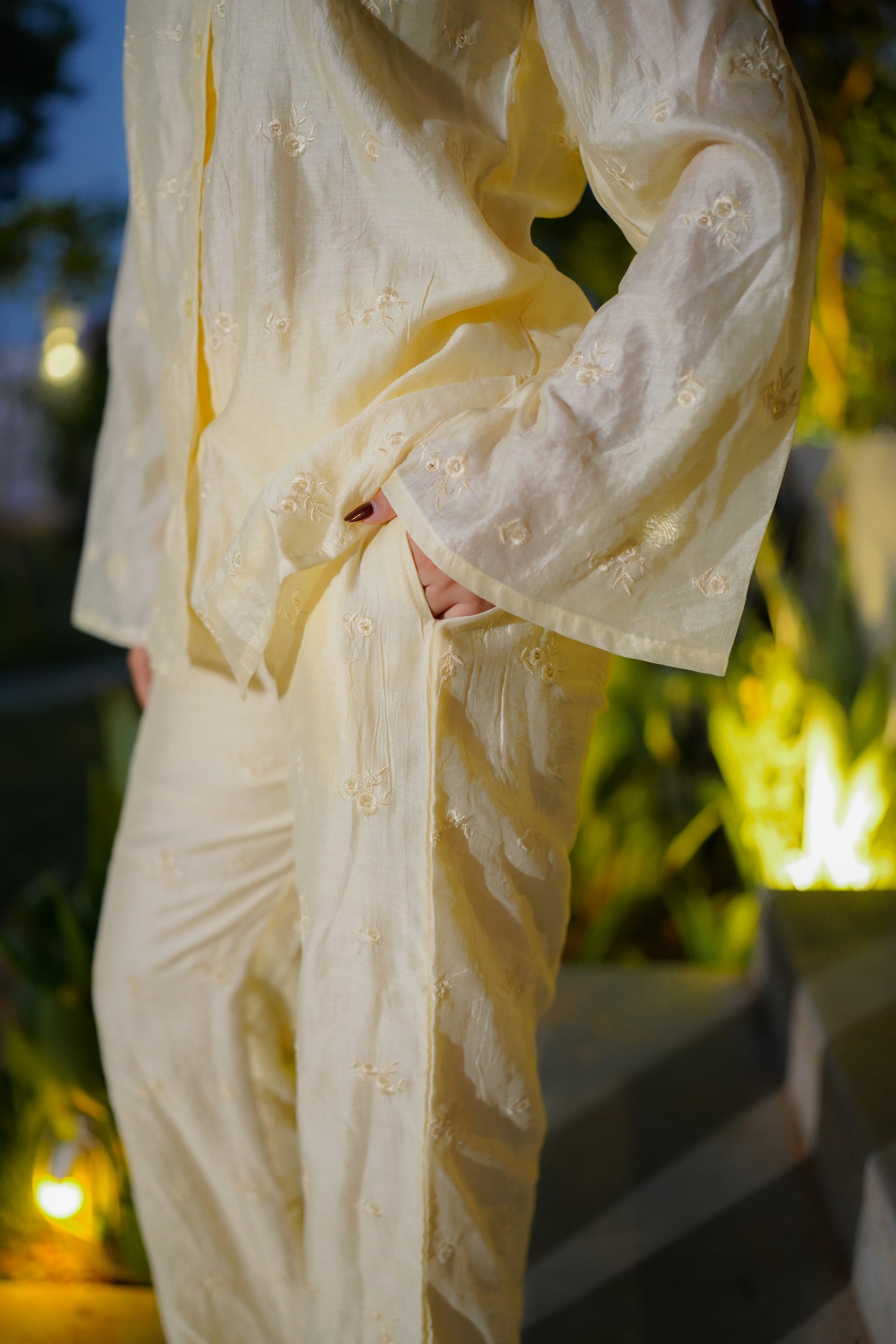 Crafted from lightweight, breathable fabric, the Sunlit Glow Co-ord Set promises comfort and style, making it ideal for both daytime events and casual outings. Pair it with delicate accessories for a fresh and effortless look, or add bold jewelry for a statement ensemble.