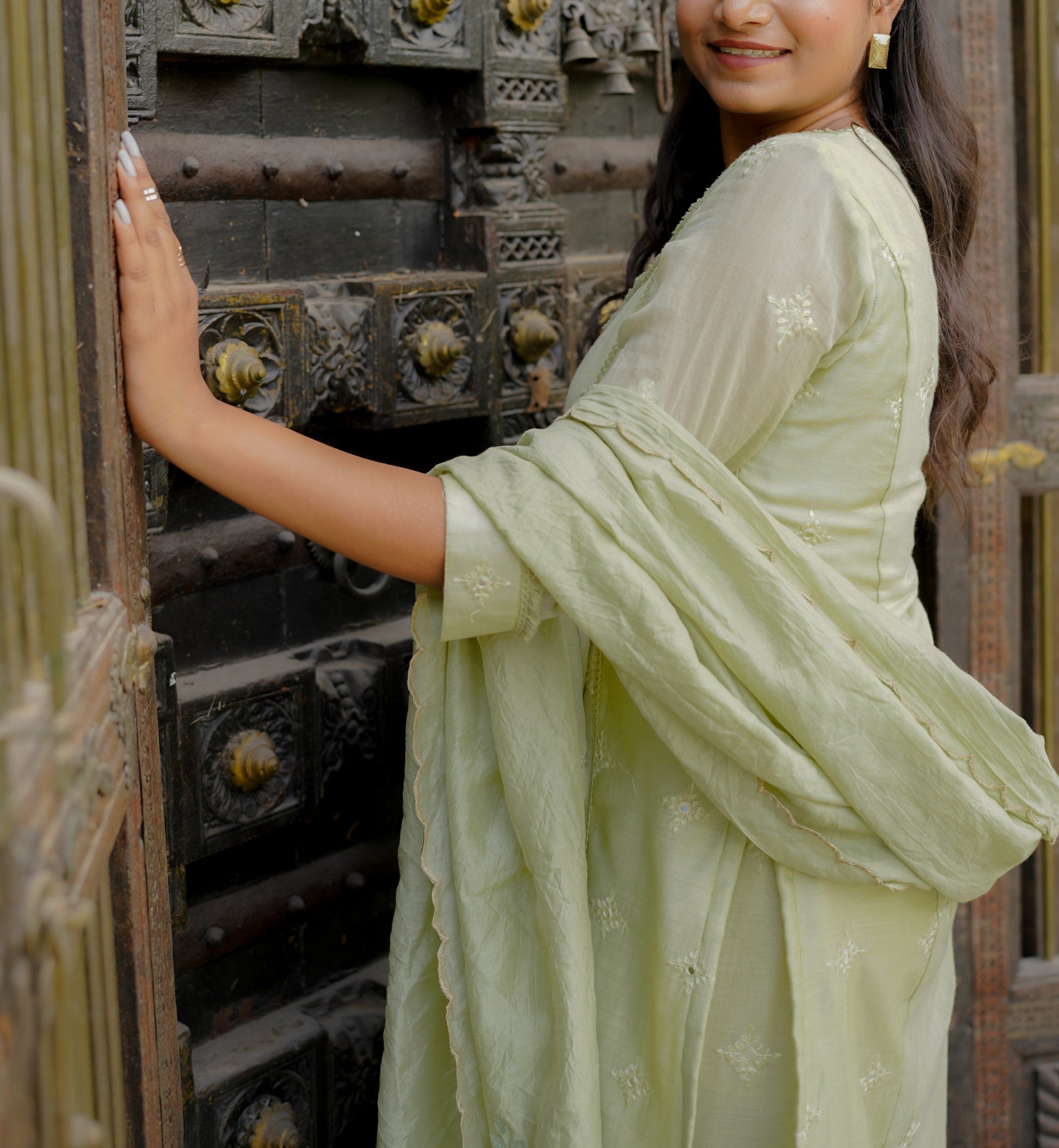 The Dahlia Straight Kurti Set in Elaichi fits very well. I bought it for work, and its comfortable enough to wear all day. Great color and design.