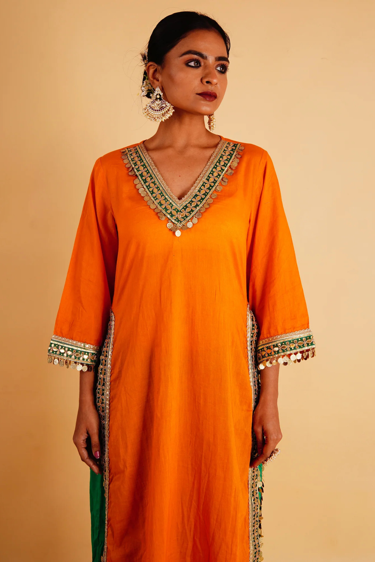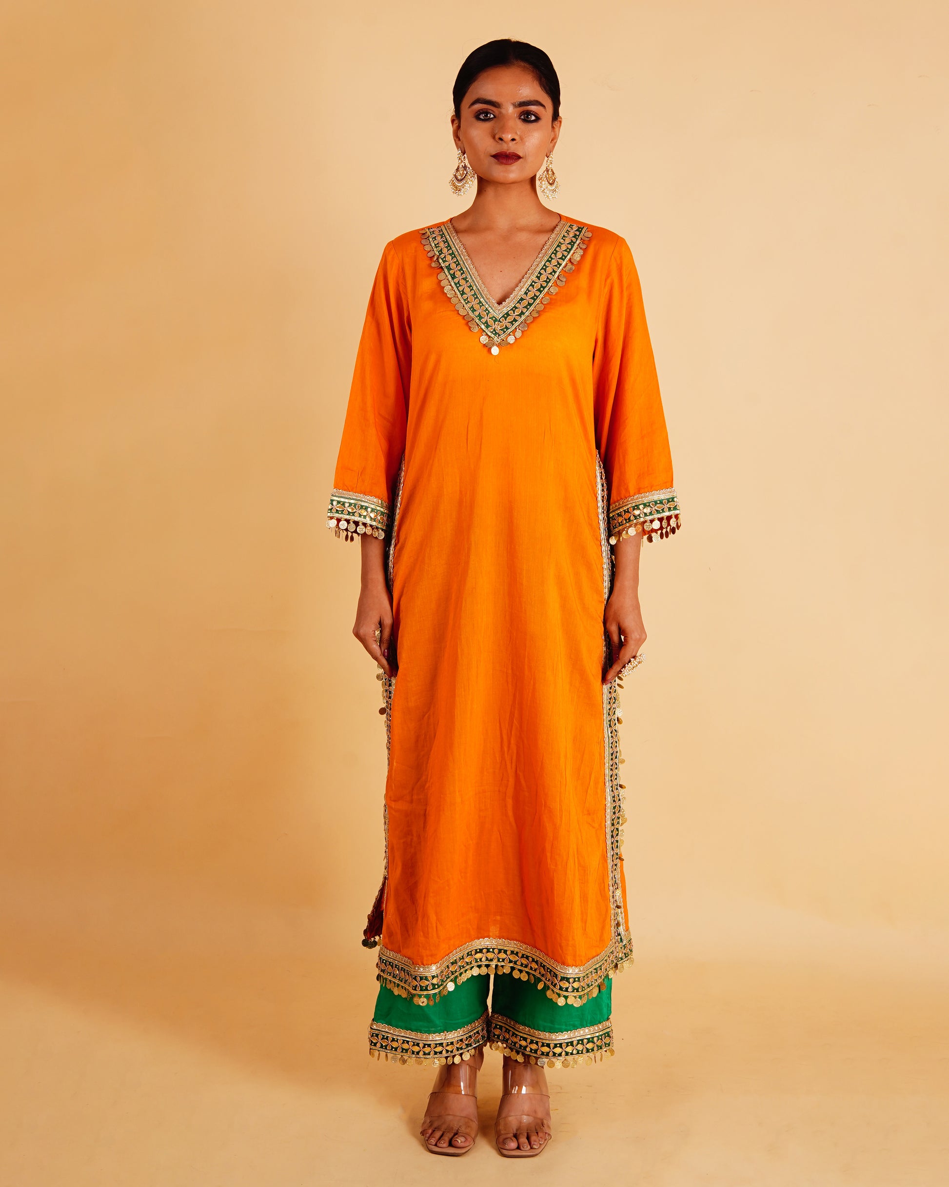 RANGOLI STRAIGHT KURTI SET - ORANGE