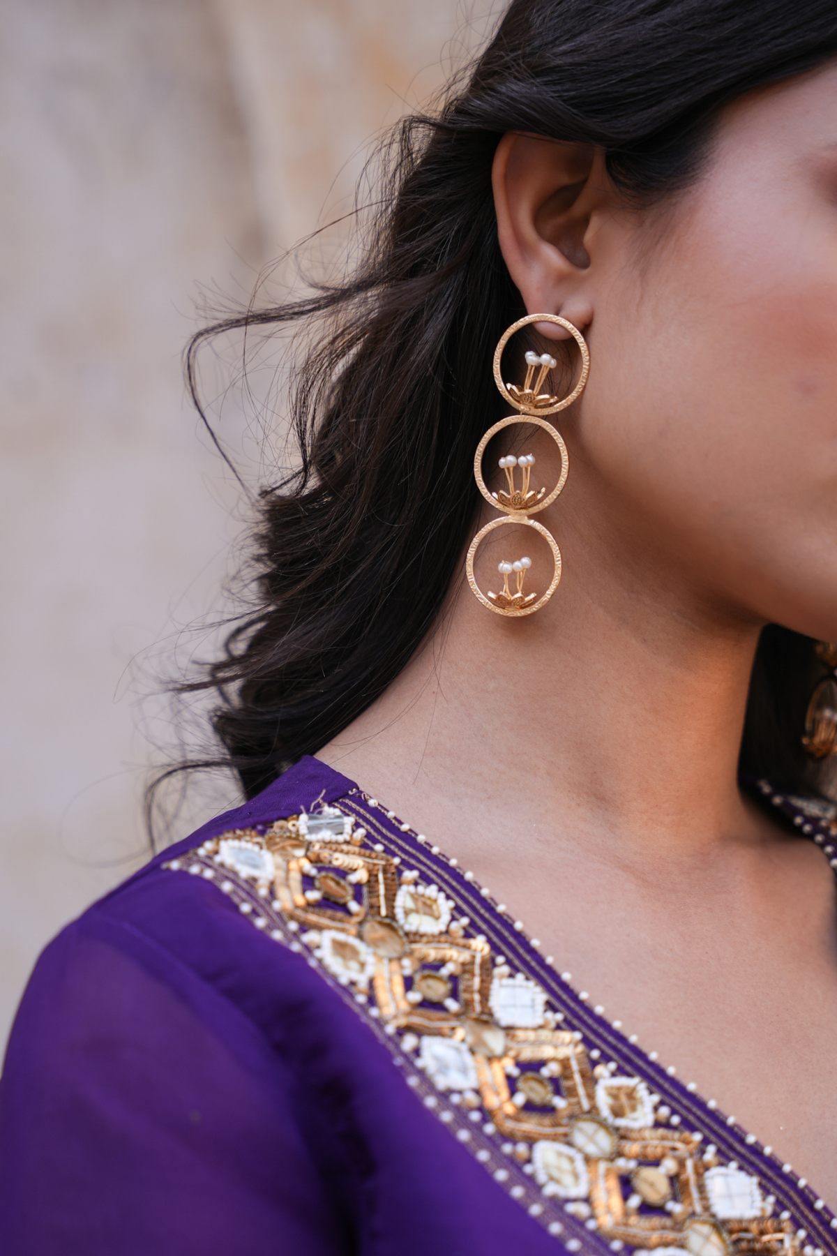 The Sakhi Co-Ord Set is a sophisticated and chic ensemble, designed to offer a perfect balance of modern style and traditional craftsmanship. The kurta, made from soft organza fabric with an attached crepe lining, features a flattering short silhouette with a graceful V-neckline. The beauty of this kurta lies in its intricate hand-embroidered border, showcasing geometric patterns executed with the fine aari technique. Adorned with silver and gold mirrors, metal sequins, and beads, the border adds a touch of opulence to the piece. The kurta is further embellished with an all-over bead and sequin booti, with additional hand-embroidered borders on the sleeve hems for a refined finish.