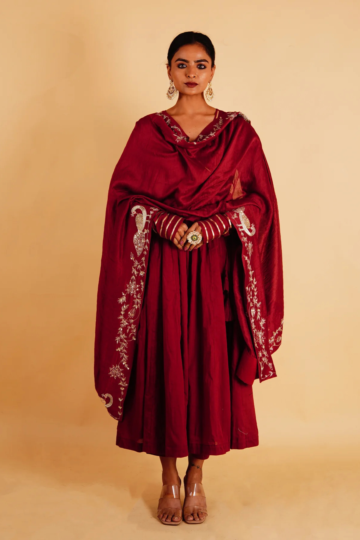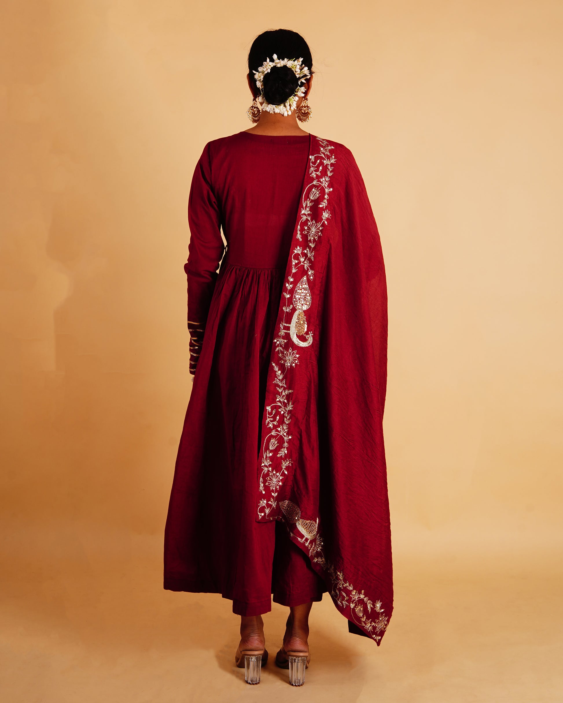 • Gently hand wash or opt for dry cleaning to maintain its intricate work.