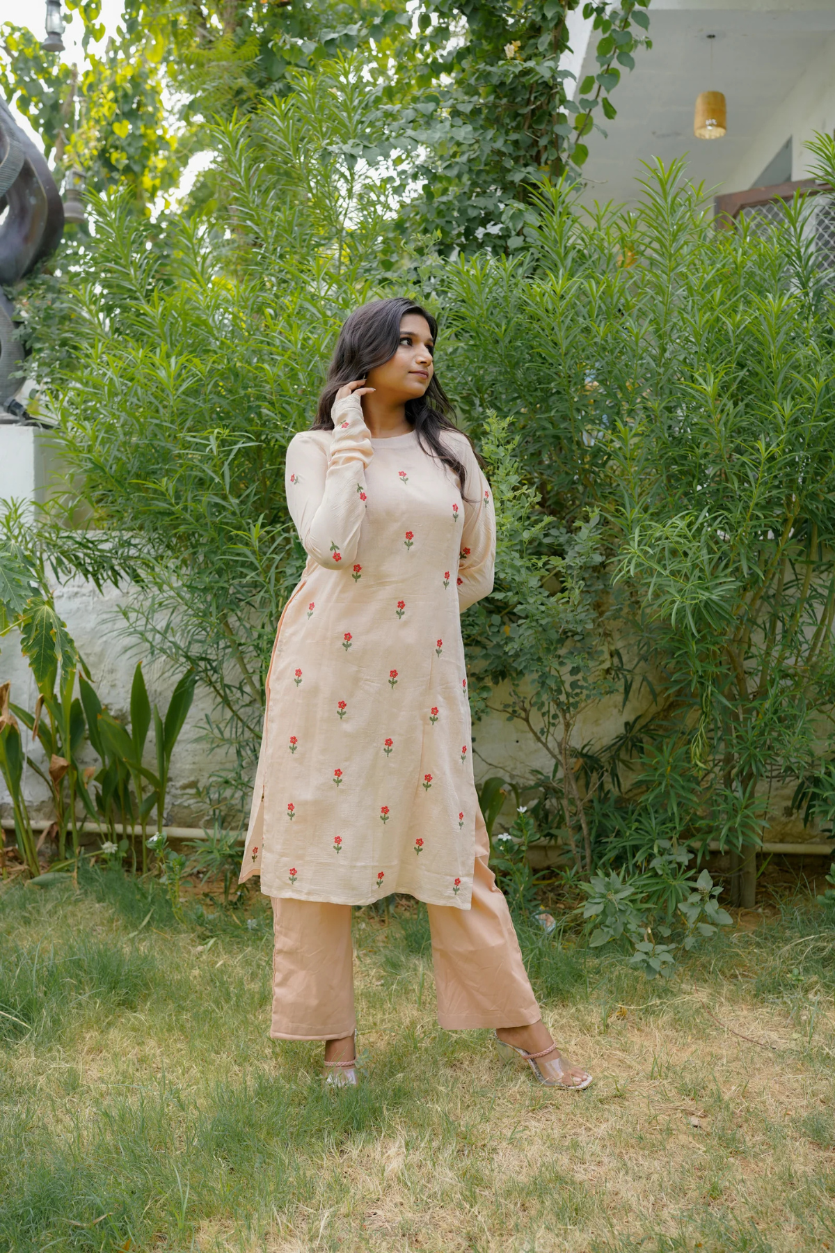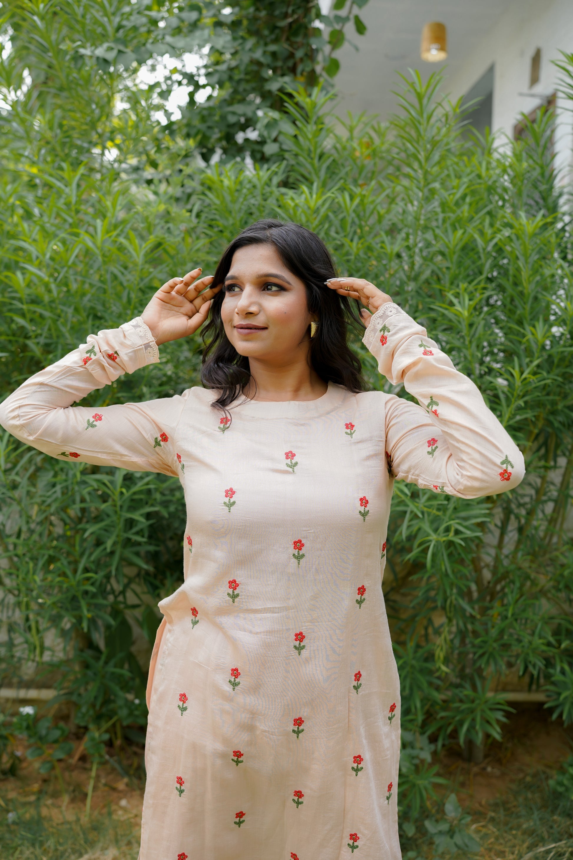 Step into timeless charm with the ROSE STRAIGHT KURTI, an outfit designed to complement your individuality and enhance your graceful presence.